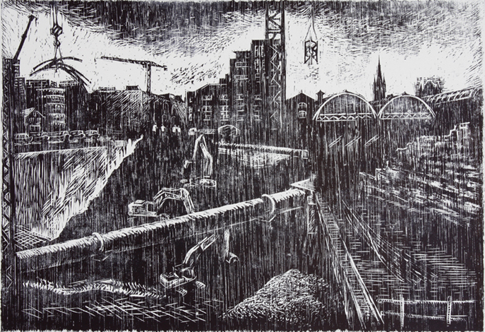Kings Place, woodcut, 47 x 68 cms, 2006